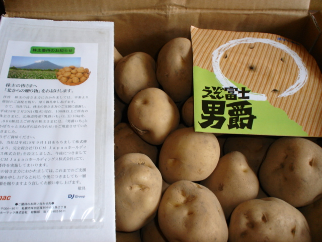 ホーマックとして最後(現・DCM japanホールディングス。ホーマック・カーマ・ダイキの共同持ち株会社)の株主優待品、ジャガイモ10キロ 届きました。地元にこの会社の店があるので、日用品はそこで買うように心がけようと思います。